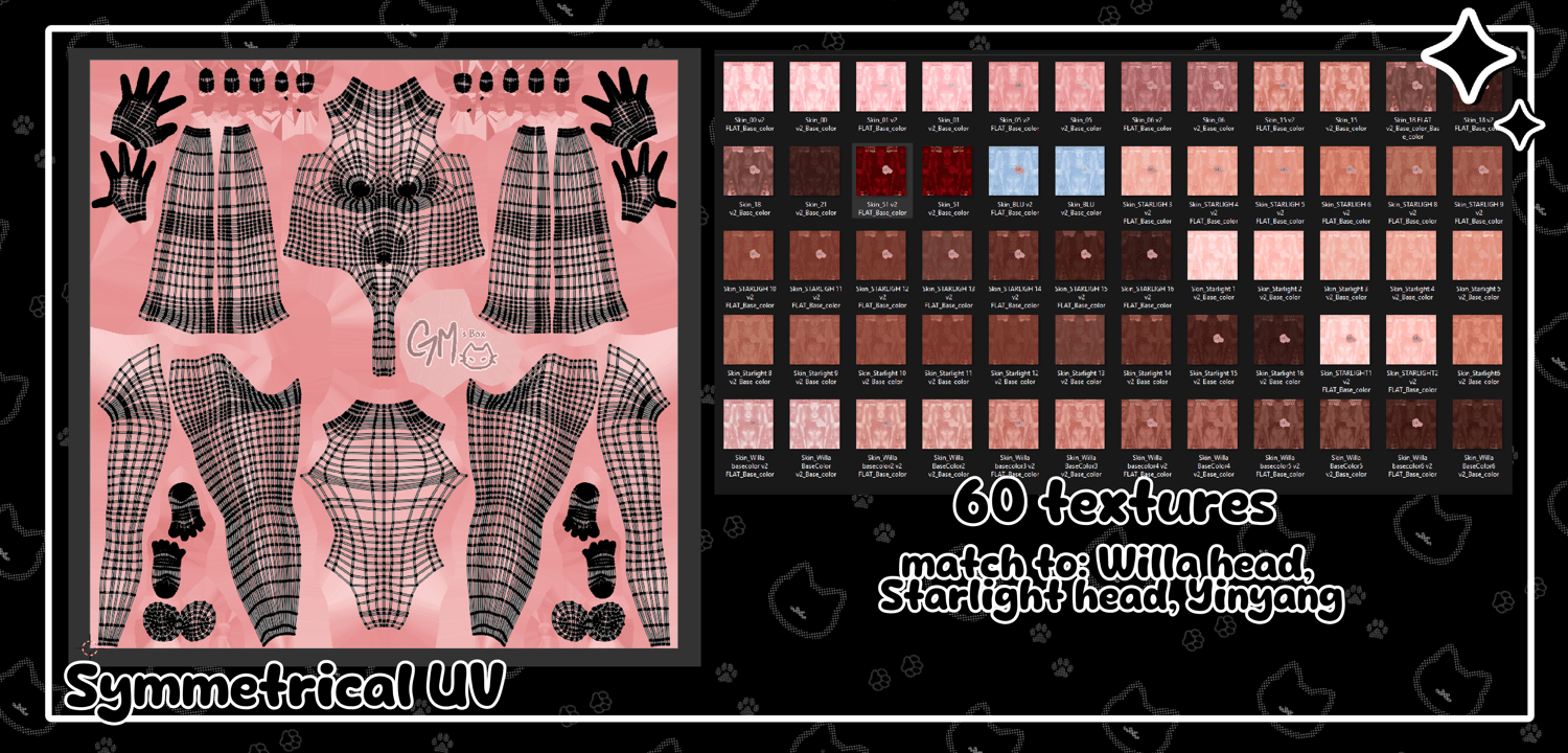 - ★ SIXTY SKINTONES matching to: Willa Head (FREE VRChat Asset) "Starlight" Anime Head - Payhip , & some yinyang head textures